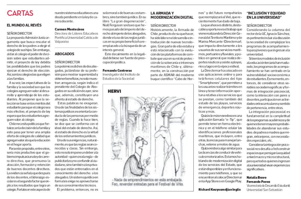 Carta al director La Tercera: “El mundo al revés”. Por Carmen Montecinos