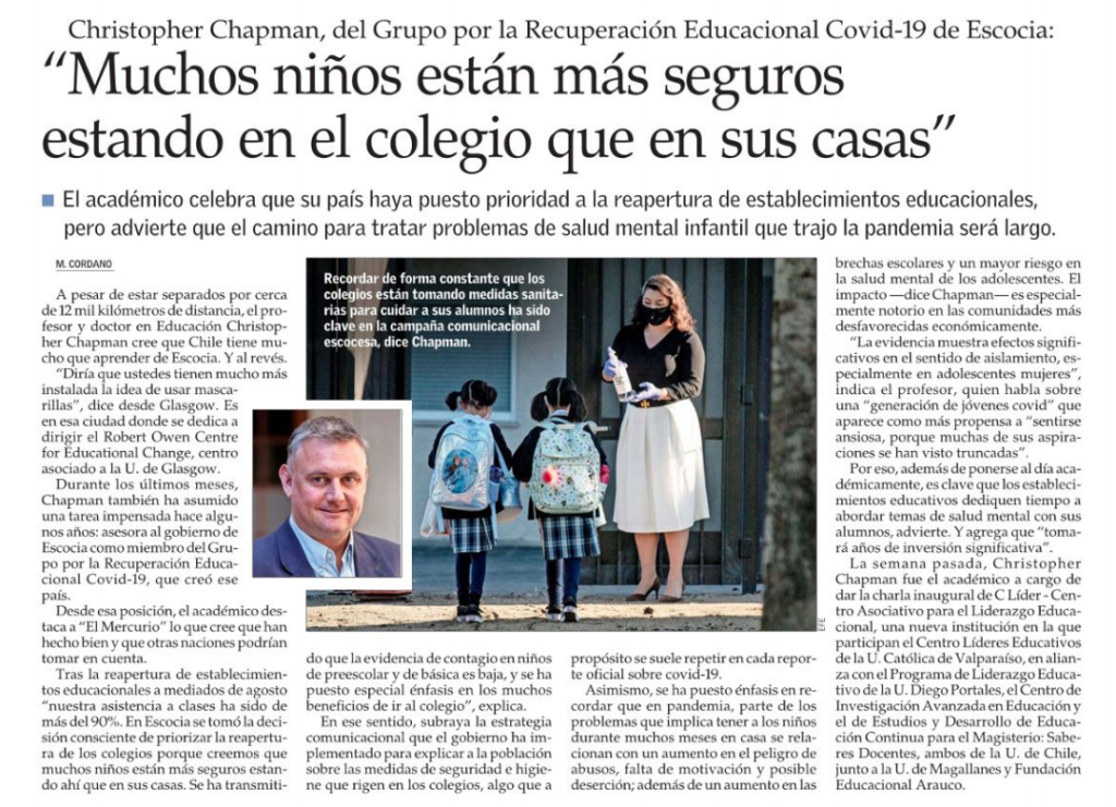 Christopher Chapman: “Muchos niños están más seguros estando en el colegio que en sus casas”
