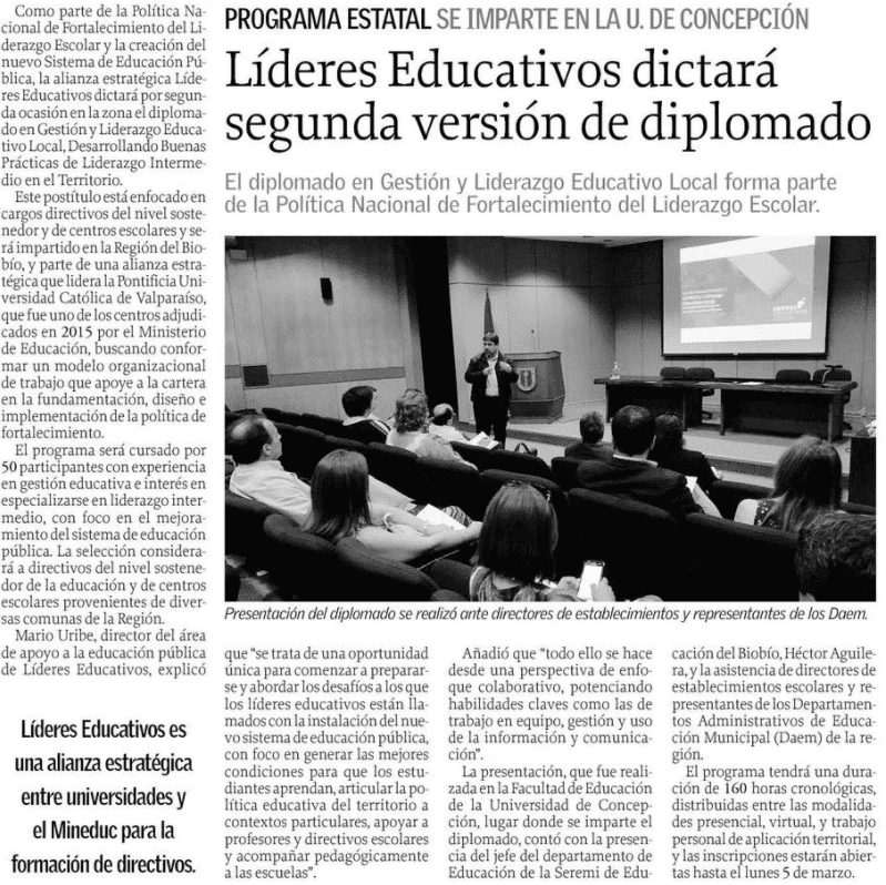 Diario El Sur: “LÍDERES EDUCATIVOS dictará segunda versión de diplomado”