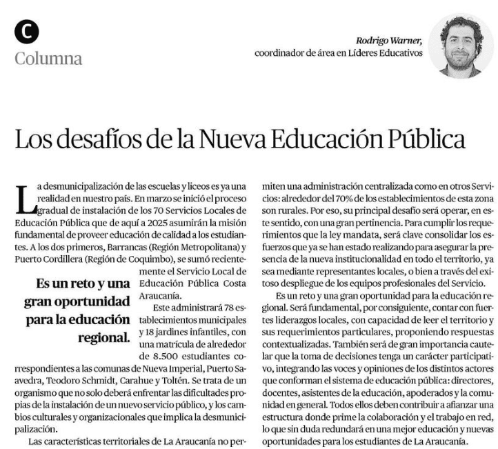 El Austral de Temuco – Rodrigo Warner: Los desafíos de la Nueva Educación Pública