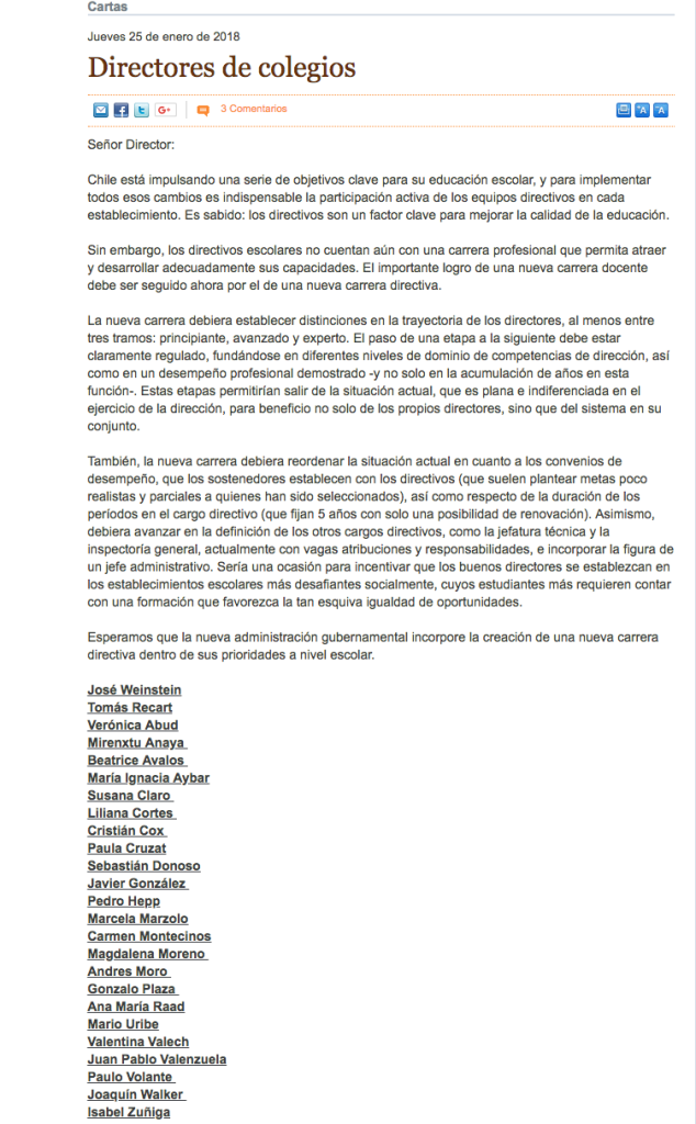 El Mercurio – Carta al director