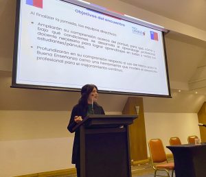 Respecto a su presentación, Montecinos señaló que “sabemos que la colaboración es un impulsor clave para el aprendizaje profesional y organizacional. Además, sabemos que la colaboración es compleja, ya que se lubrica y moviliza a través de la confianza relacional que permite a quienes colaboran establecer relaciones de interdependencia positiva. La colaboración es compartir el trabajo para lograr un objetivo que requiere de conocimientos que están distribuidos entre los distintos profesionales, no es solo repartir el trabajo. Para colaborar se requiere que el equipo directivo establezca un tiempo regular y protegido que posibilite a las y los docentes hablar abiertamente acerca de sus prácticas, identificando sus necesidades de mejora a nivel individual y colectivo. Los resultados de aprendizaje difícilmente cambiarán sin cambiar las oportunidades que ofrecen los y las docentes para que el currículo sea accesible para todo el alumnado”.