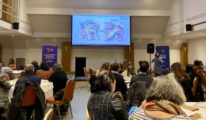 Durante la actividad, la directora ejecutiva del Centro Líderes Educativos PUCV, Carmen Montecinos, ofreció una presentación cuyo propósito fue profundizar en la colaboración como una práctica y una disposición clave para impulsar el aprendizaje profesional situado. Además, abordó las condiciones necesarias para fortalecer una cultura escolar basada en la colaboración.