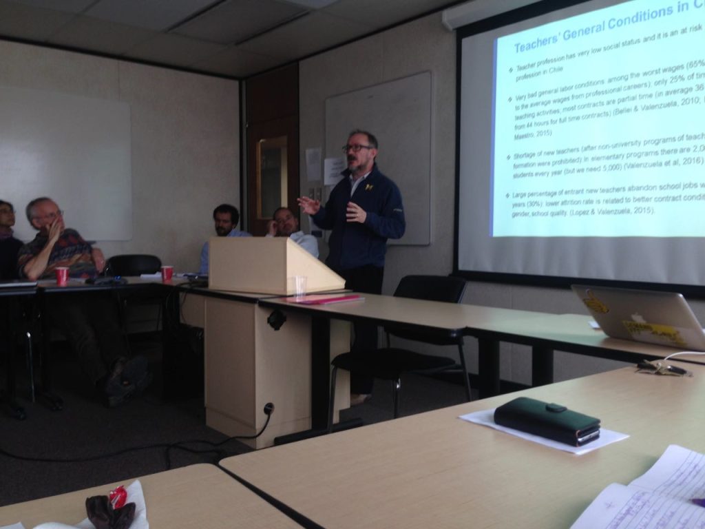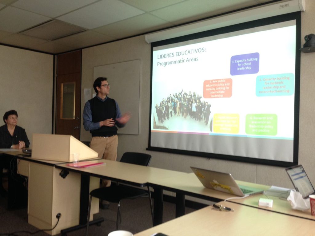 El segundo de ellos fue “CIDE SEMINAR on Schools in Chile” realizado el 11 de enero en la ciudad de Ontario. Este evento, organizado por el Comparative, International & Development Education Centre (CIDEC) del Ontario Institute for Studies in Education (OISE), fue moderado por el Prof. Stephen Anderson. Participaron del seminario académicos y estudiantes de postgrado del OISE, quienes discutieron con el equipo de LIDERES EDUCATIVOS sobre los desafíos que enfrentan las escuelas chilenas y sus directores para mejorar y sostener ese mejoramiento en el tiempo, además de profundizar en la estrategia de trabajo colaborativo en redes escolares.