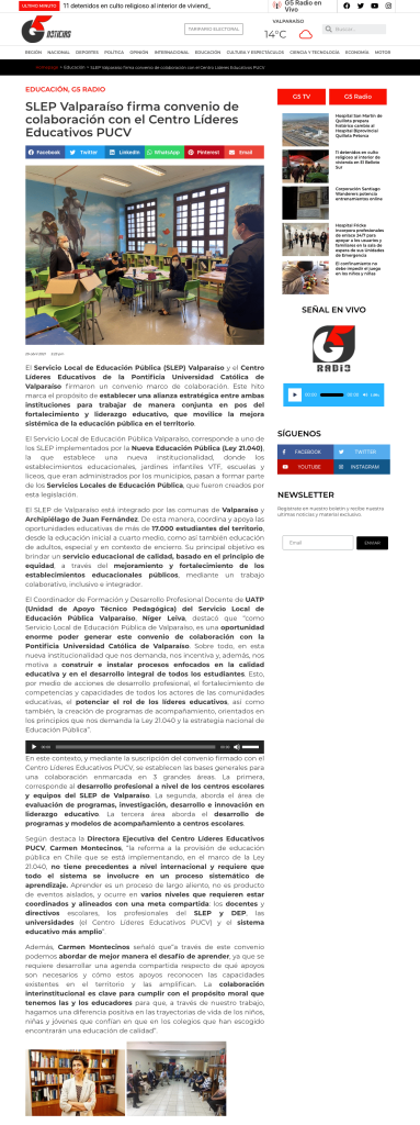 Prensa: SLEP Valparaíso firma convenio de colaboración con el Centro Líderes Educativos PUCV