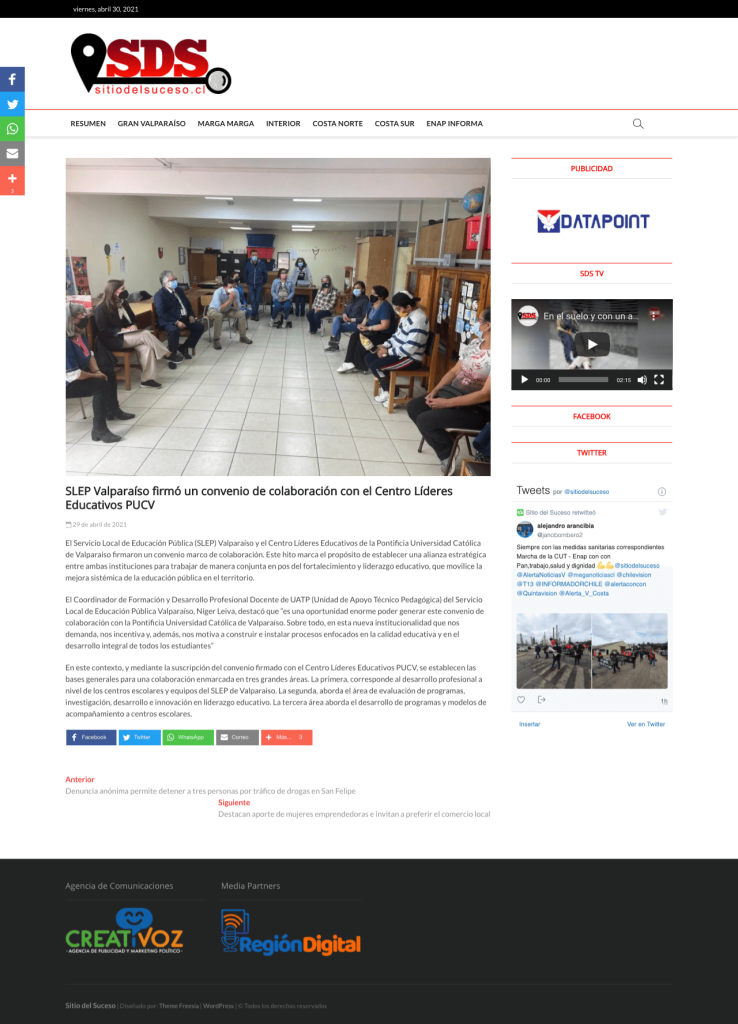 Prensa: SLEP Valparaíso firmó un convenio de colaboración con el Centro Líderes Educativos PUCV